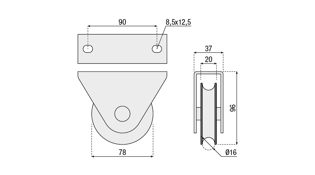 גלגל לשער בית סגור עגול מסב בודד