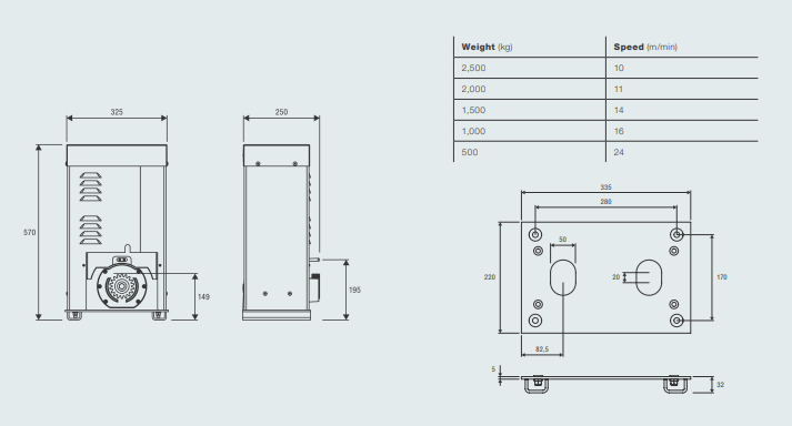 מנוע לשער קונזולי ( שער כבד ) במשקל עד 2500 ק"ג. מתח מנוע 230 מהירות שער 10-24 מטר/דקה. זרם 4A גיר טבול שמן N 2500 דחיפה משקל 36.3